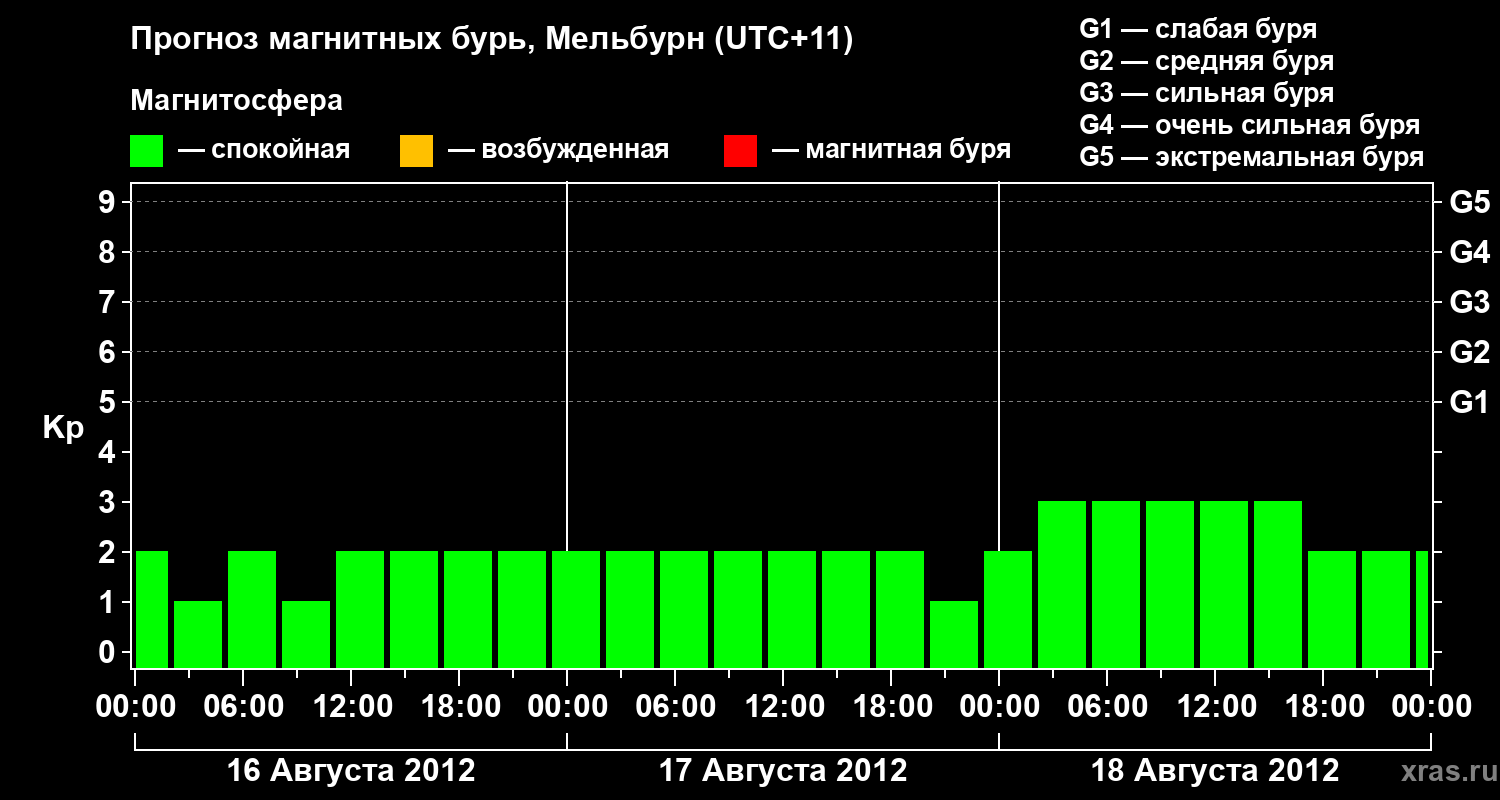 Прогноз магнитных бурь в Мельбурне — 16 августа 2012 года