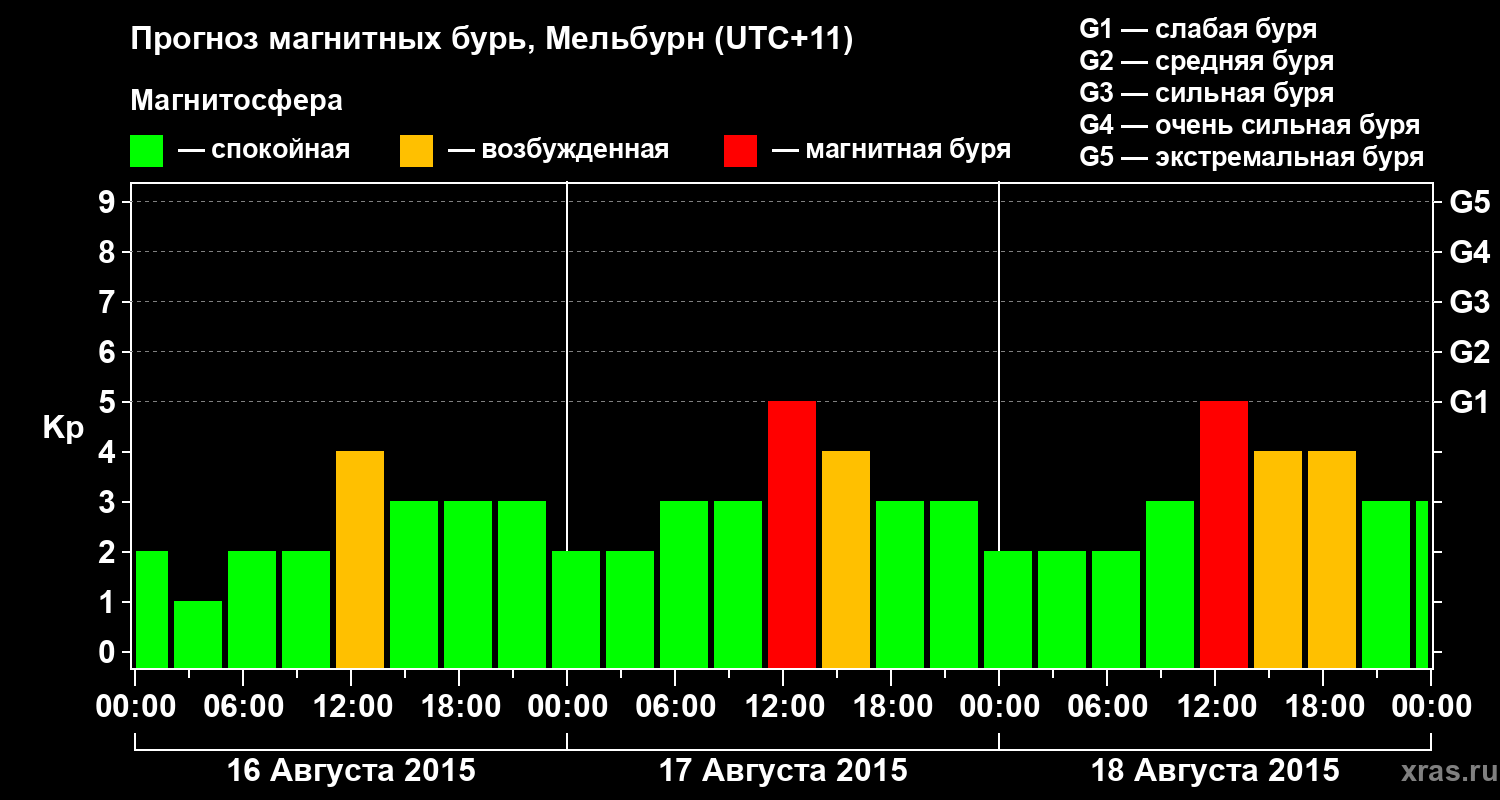 Прогноз магнитных бурь в Мельбурне — 16 августа 2015 года