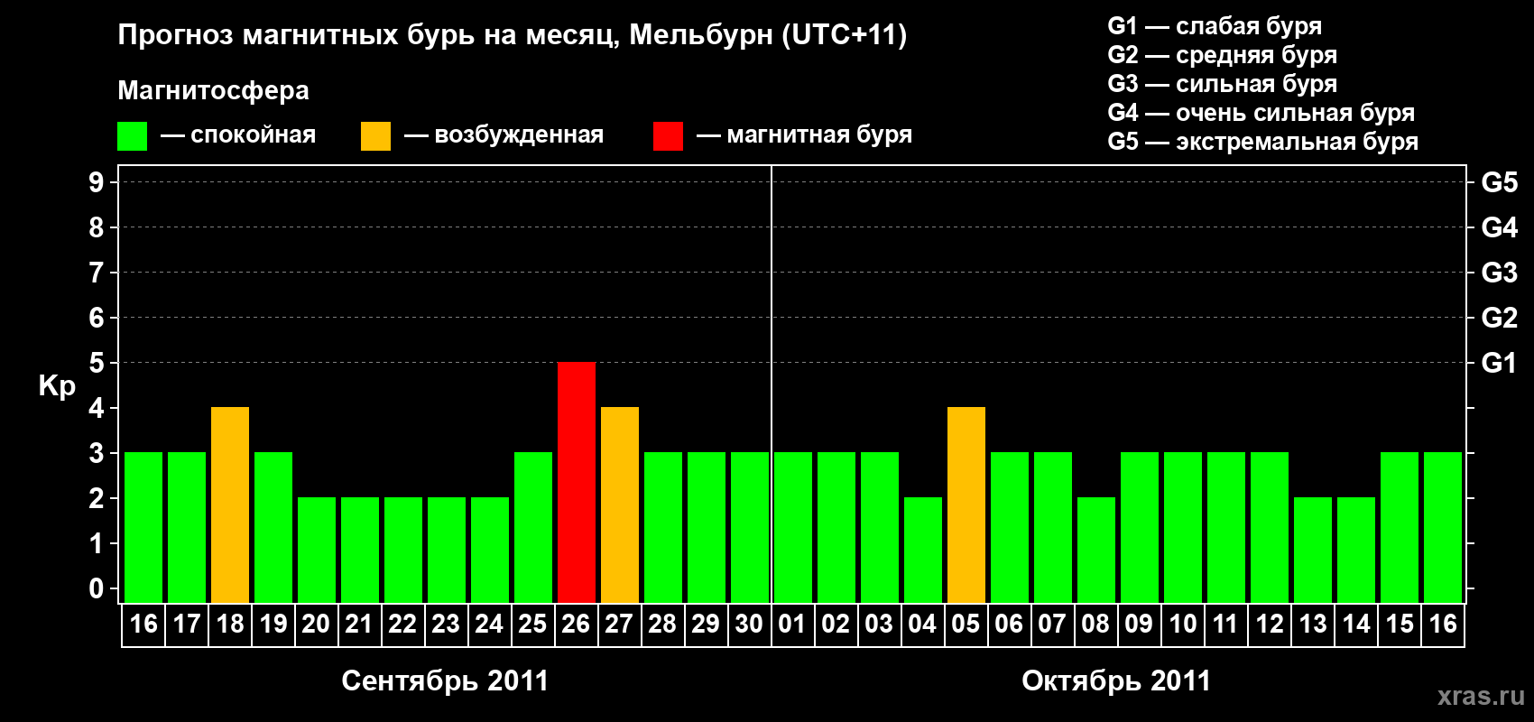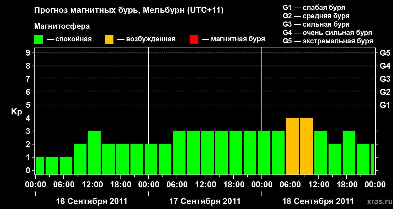 Прогноз магнитных бурь в Мельбурне — 16 сентября 2011 года