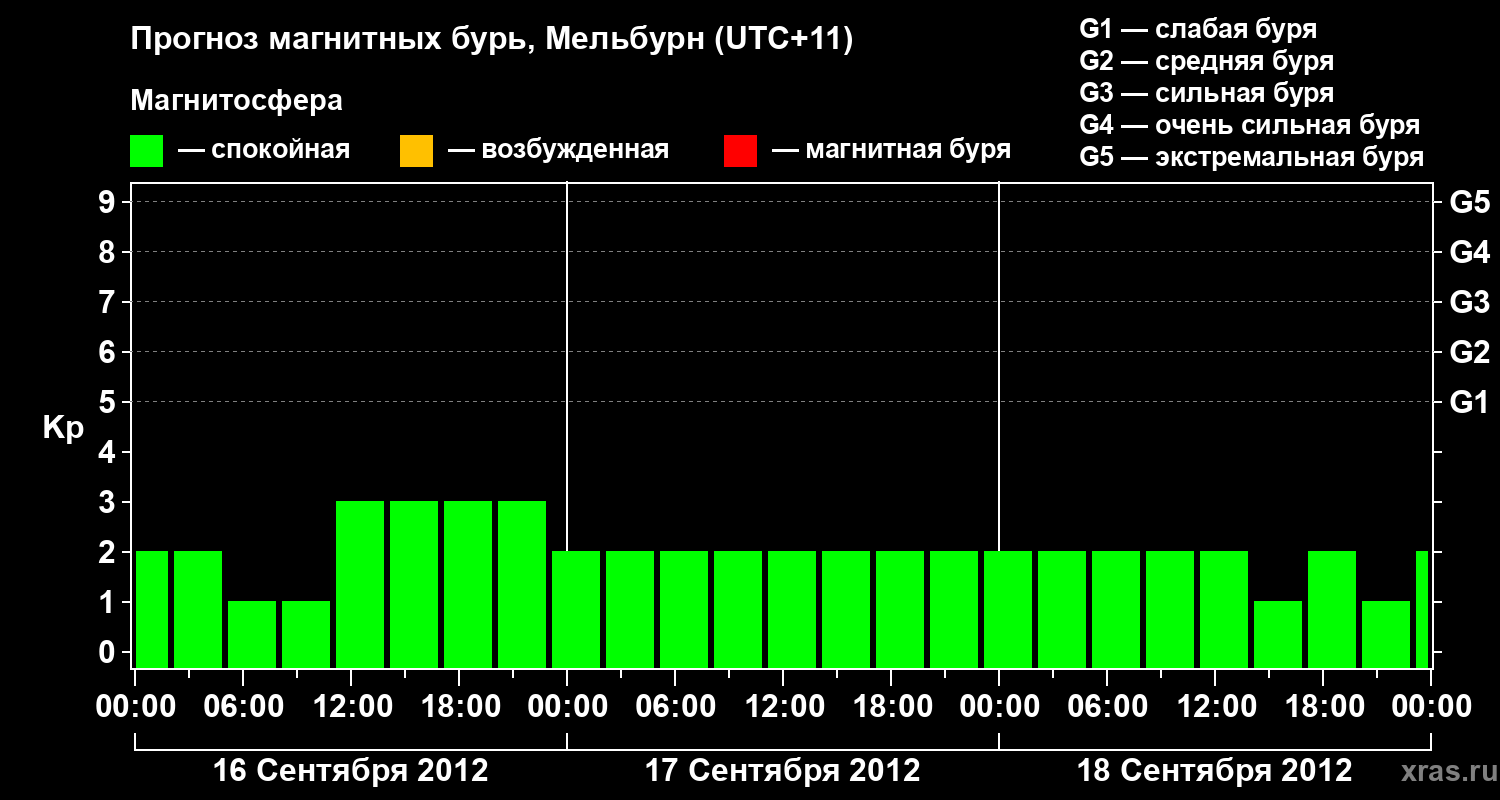 Прогноз магнитных бурь в Мельбурне — 16 сентября 2012 года
