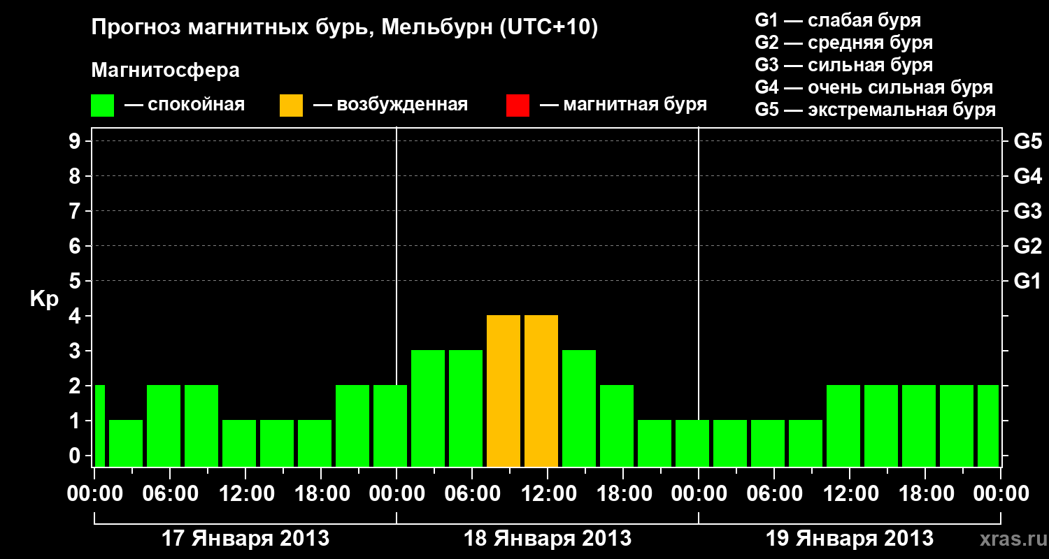 Прогноз магнитных бурь в Мельбурне — 17 января 2013 года