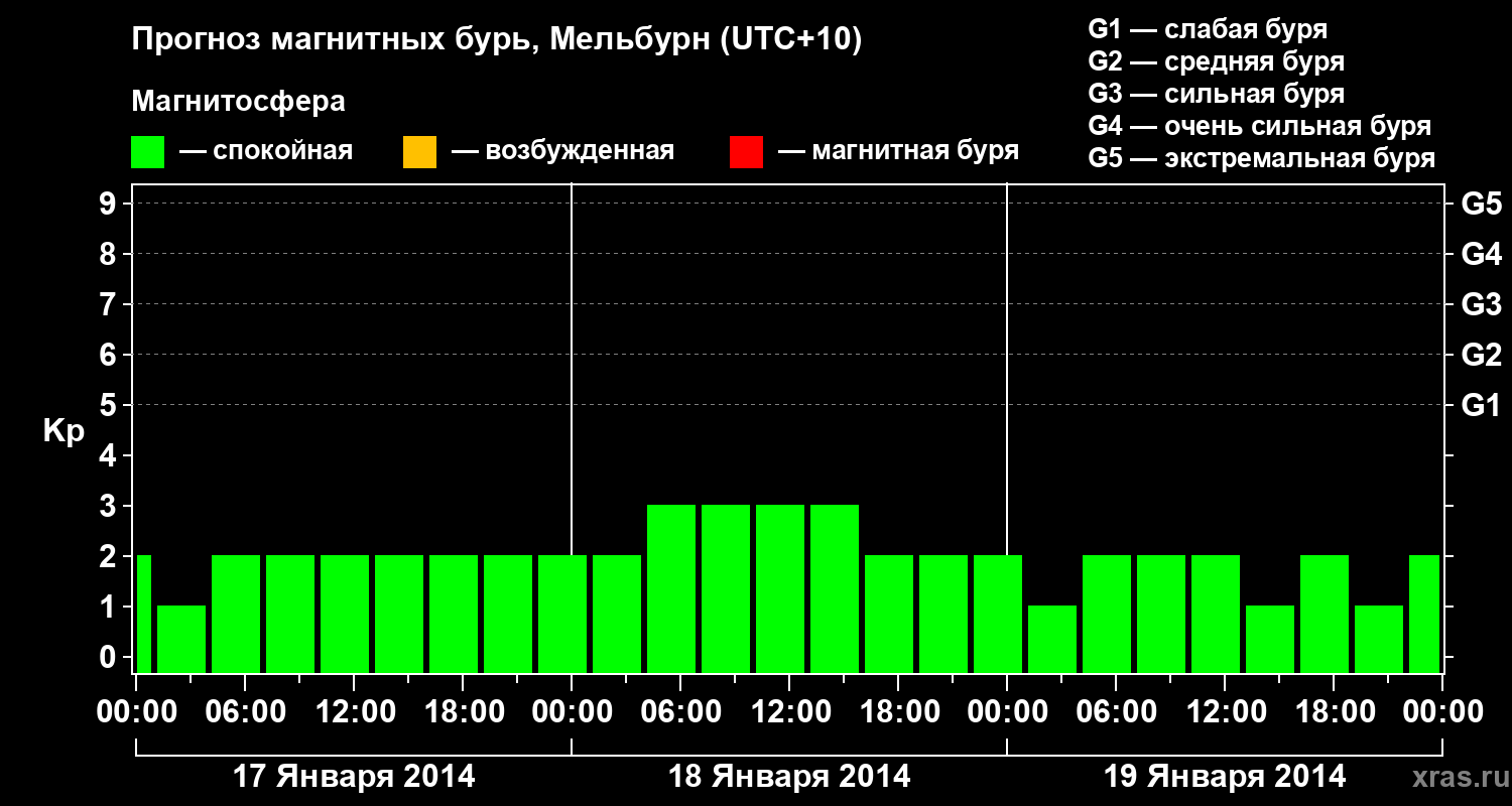 Прогноз магнитных бурь в Мельбурне — 17 января 2014 года