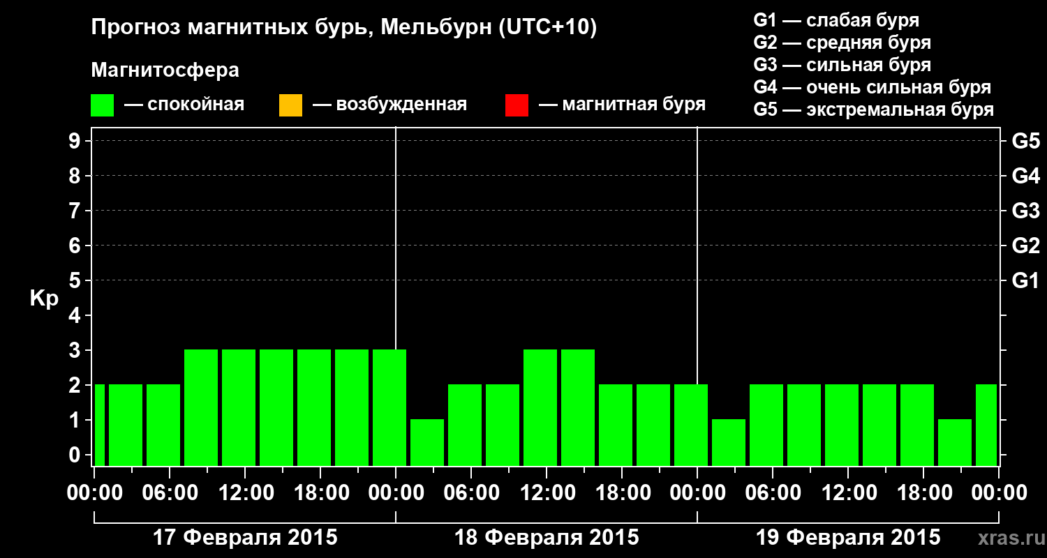 Прогноз магнитных бурь в Мельбурне — 17 февраля 2015 года