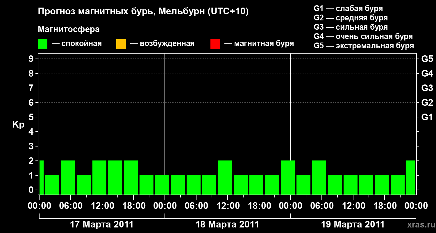Прогноз магнитных бурь в Мельбурне — 17 марта 2011 года
