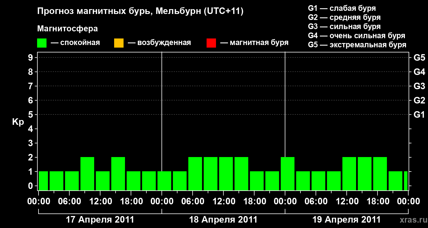 Прогноз магнитных бурь в Мельбурне — 17 апреля 2011 года