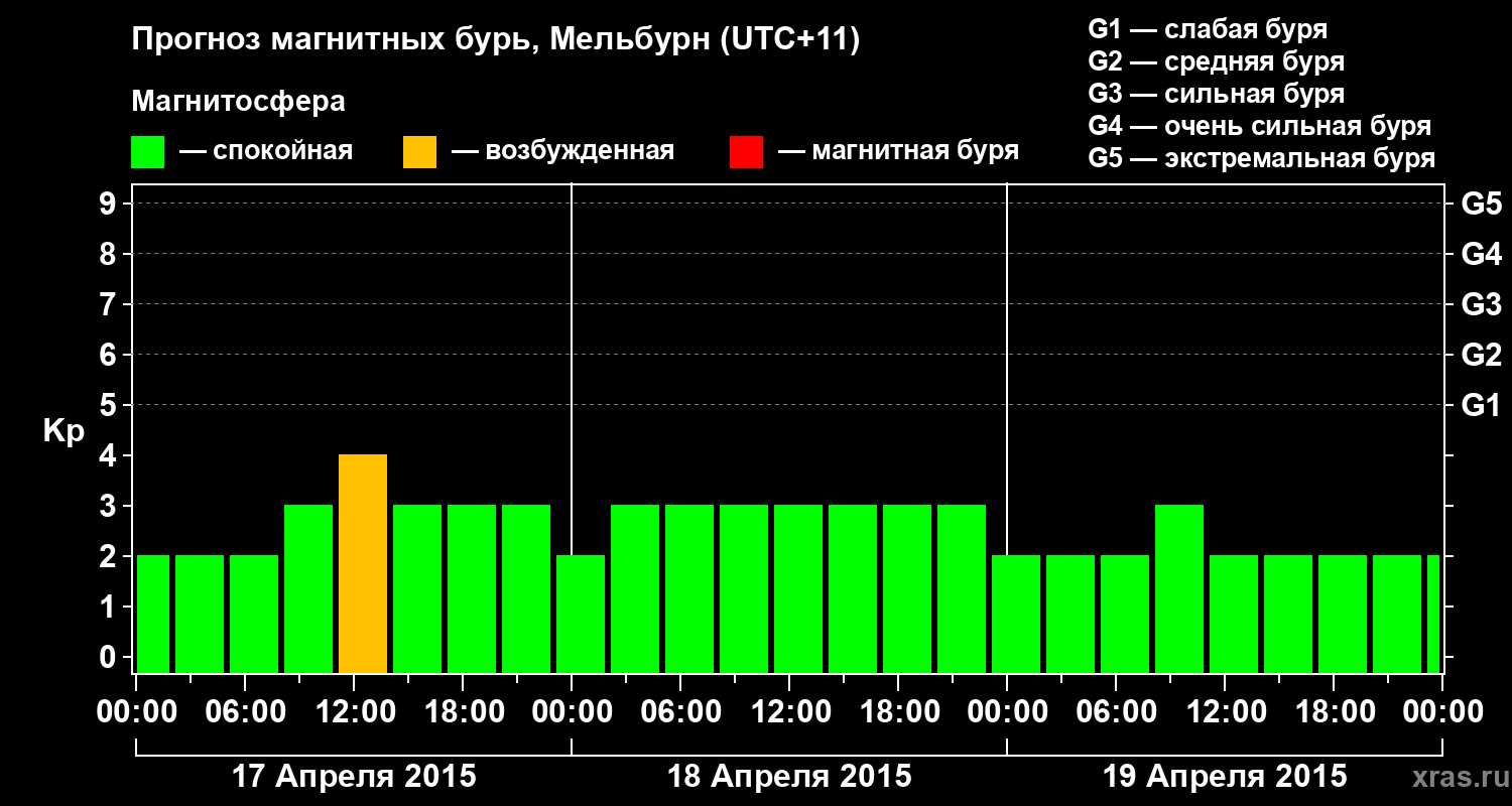 Прогноз магнитных бурь в Мельбурне — 17 апреля 2015 года