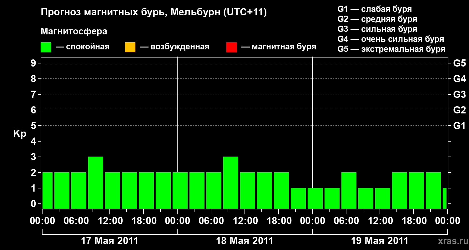 Прогноз магнитных бурь в Мельбурне — 17 мая 2011 года