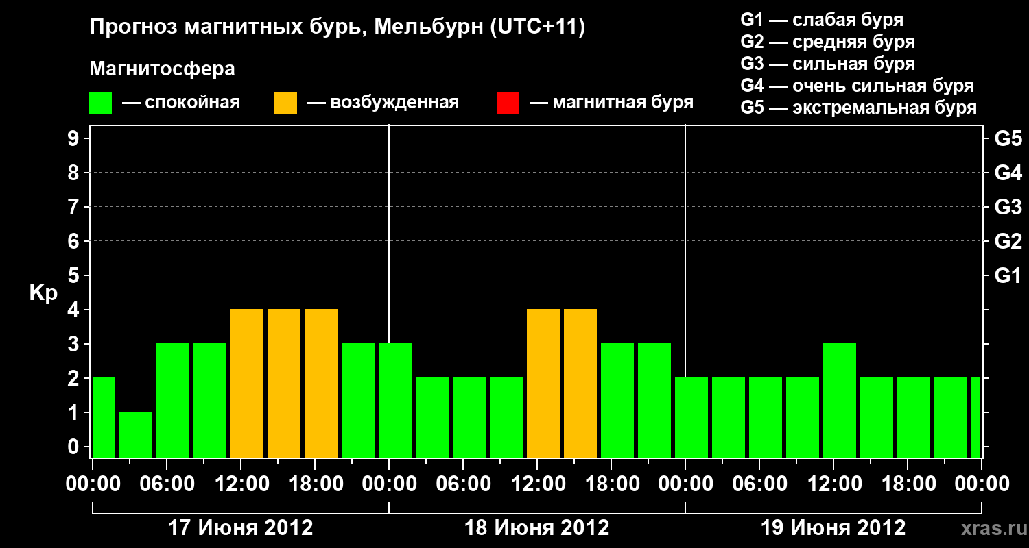 Прогноз магнитных бурь в Мельбурне — 17 июня 2012 года