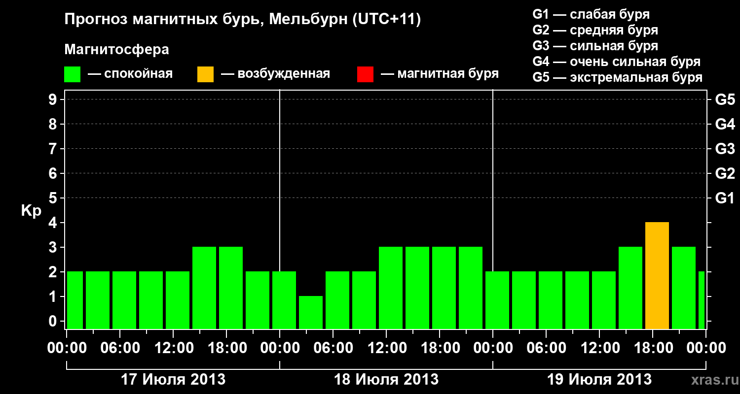 Прогноз магнитных бурь в Мельбурне — 17 июля 2013 года