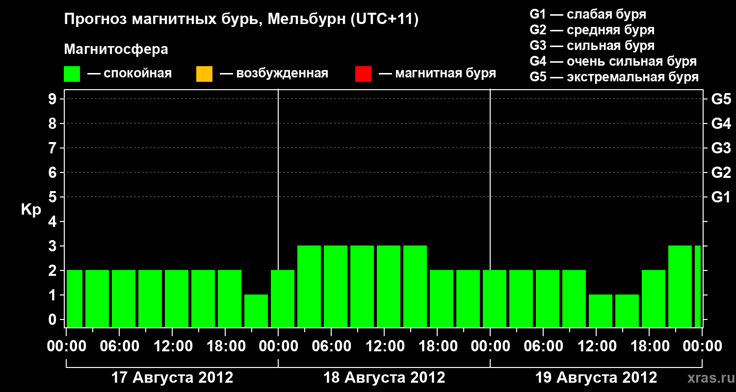 Прогноз магнитных бурь в Мельбурне — 17 августа 2012 года