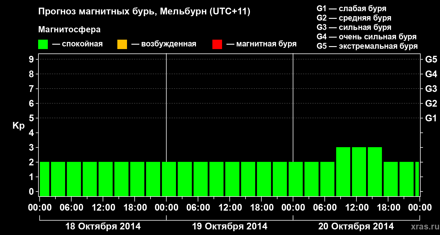 Прогноз магнитных бурь в Мельбурне — 18 октября 2014 года