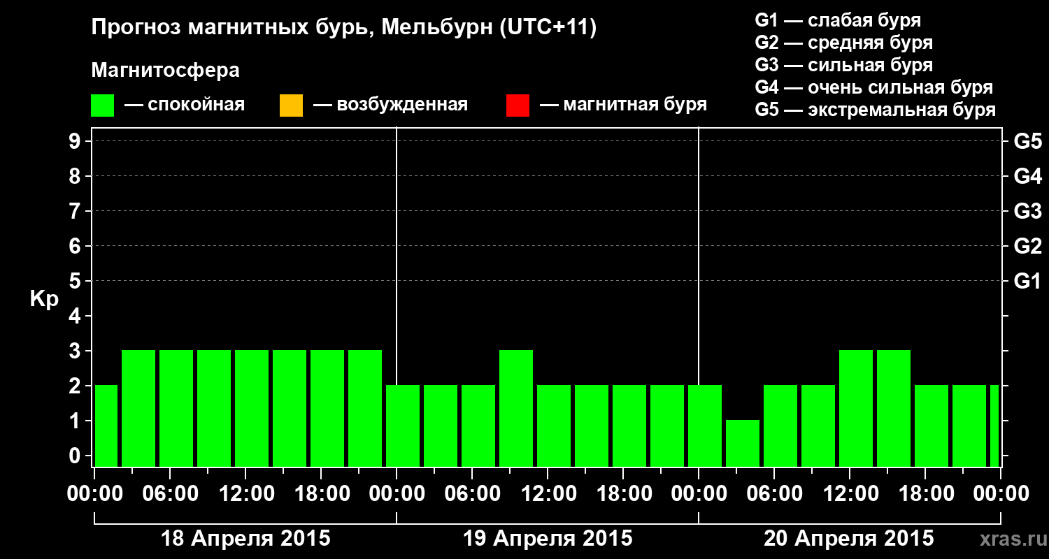 Прогноз магнитных бурь в Мельбурне — 18 апреля 2015 года