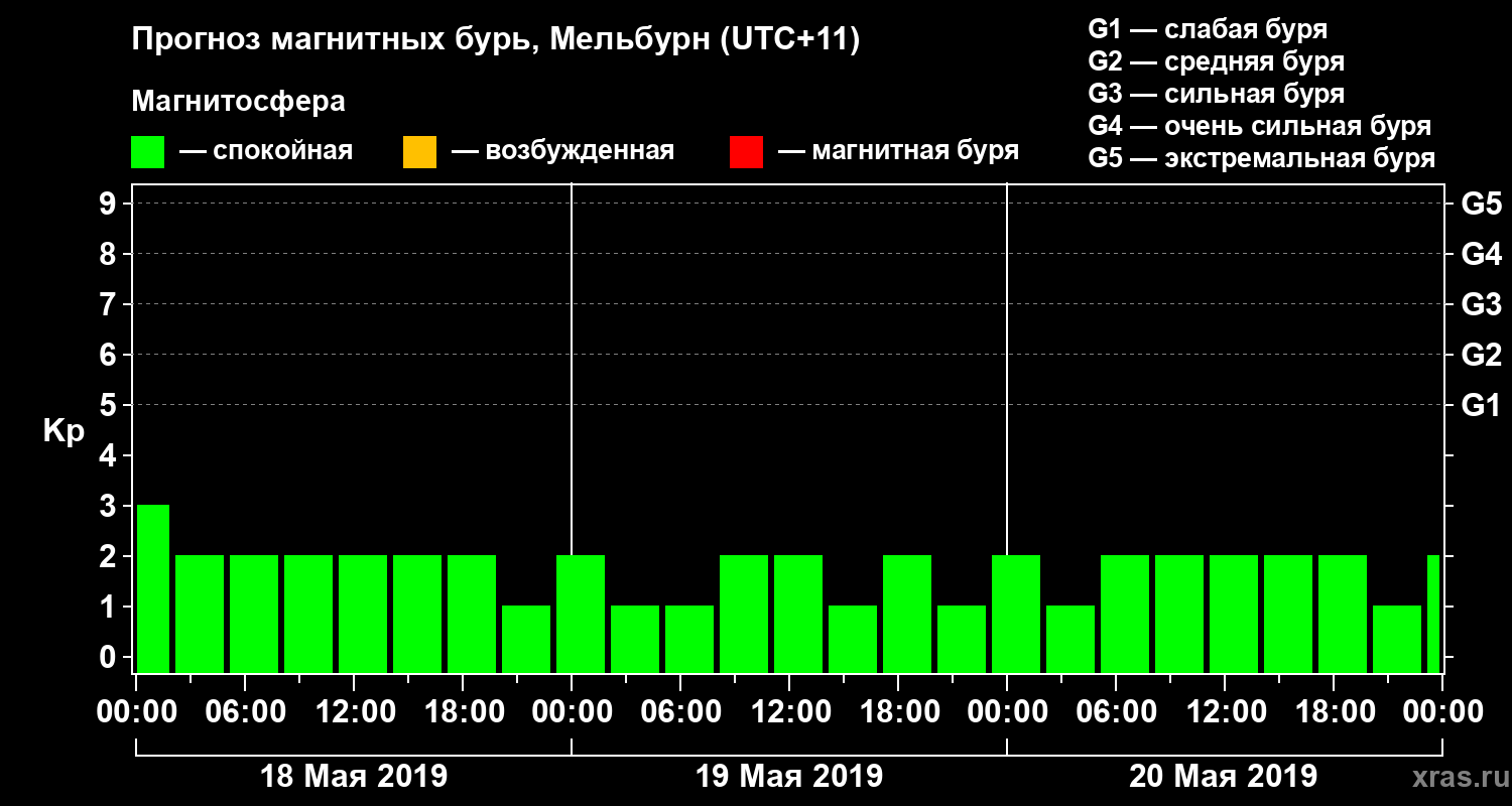 Прогноз магнитных бурь в Мельбурне — 18 мая 2019 года