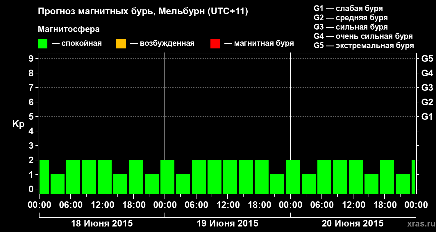 Прогноз магнитных бурь в Мельбурне — 18 июня 2015 года