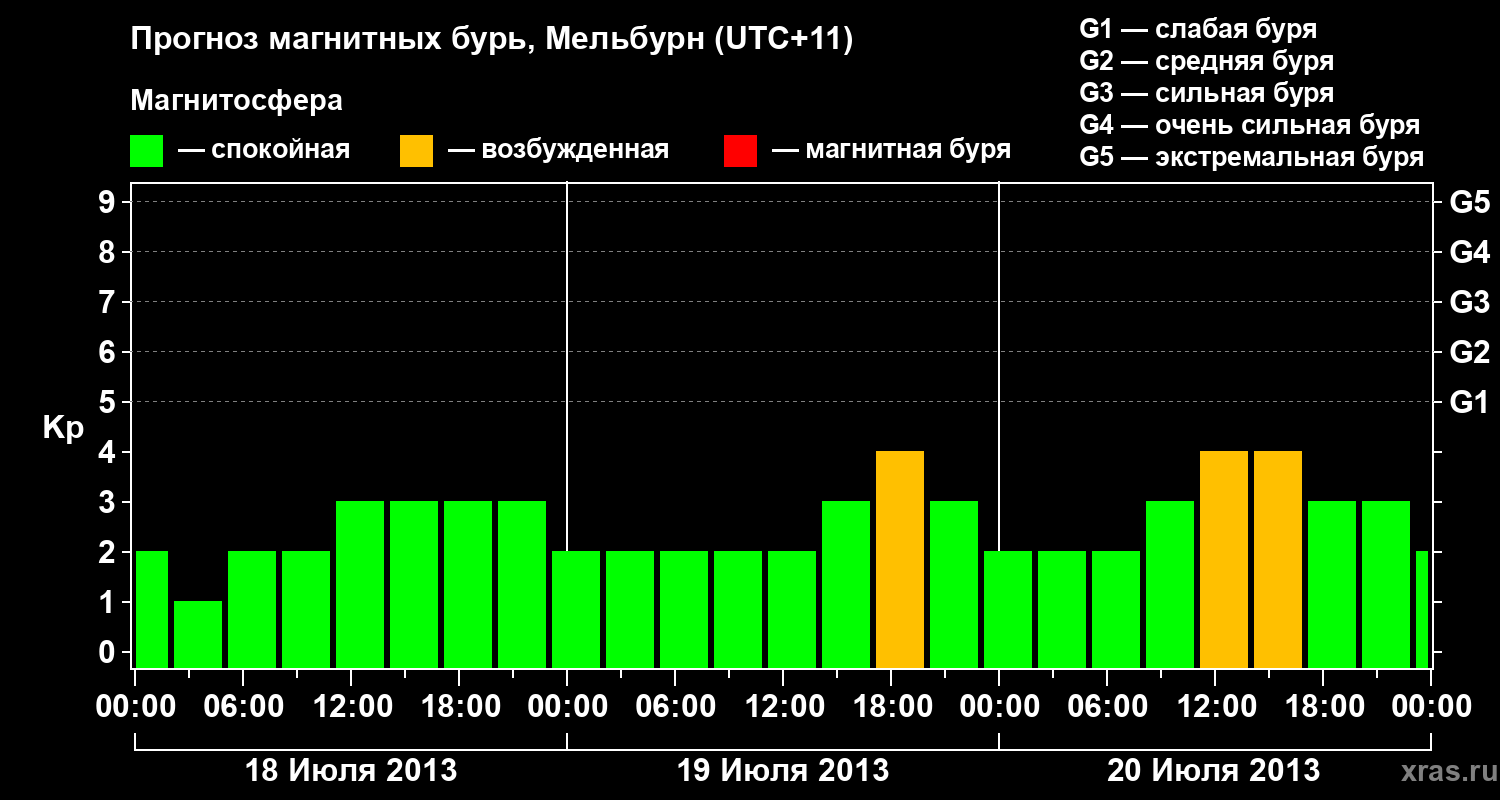 Прогноз магнитных бурь в Мельбурне — 18 июля 2013 года