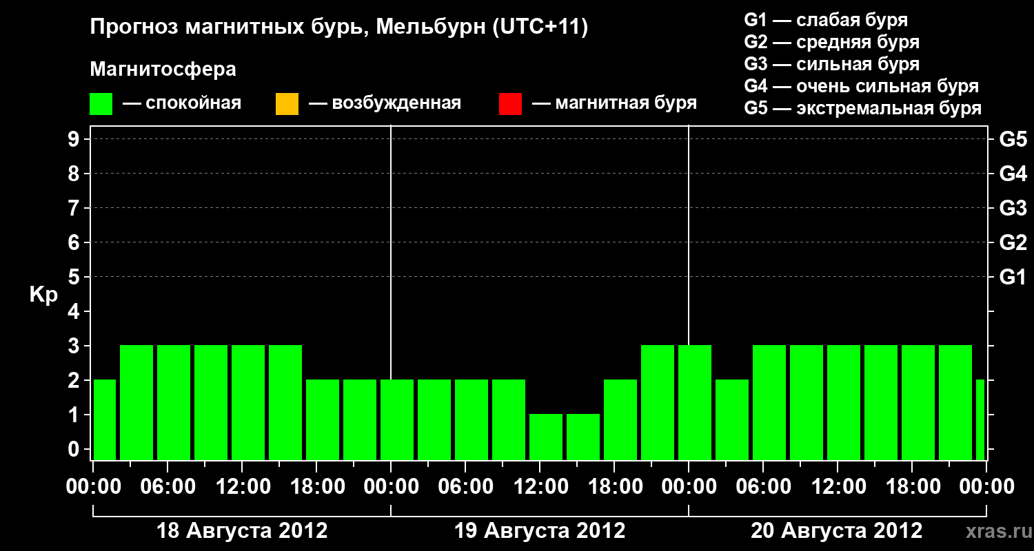 Прогноз магнитных бурь в Мельбурне — 18 августа 2012 года