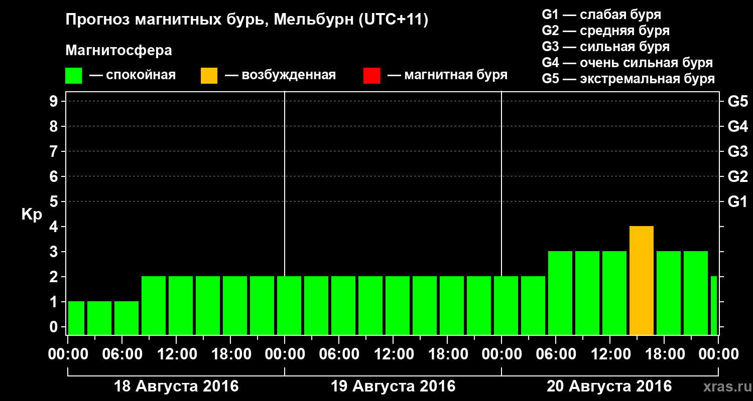 Прогноз магнитных бурь в Мельбурне — 18 августа 2016 года