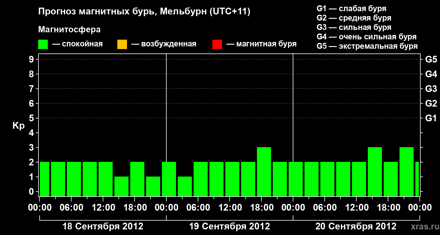 Прогноз магнитных бурь в Мельбурне — 18 сентября 2012 года