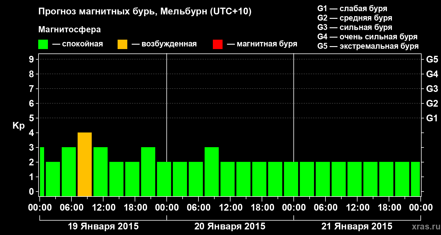 Прогноз магнитных бурь в Мельбурне — 19 января 2015 года