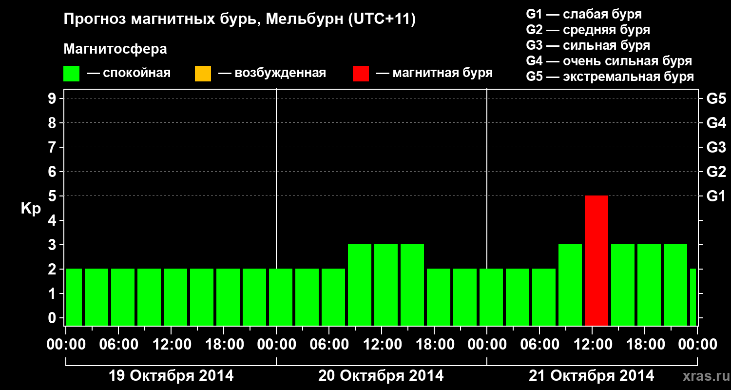 Прогноз магнитных бурь в Мельбурне — 19 октября 2014 года