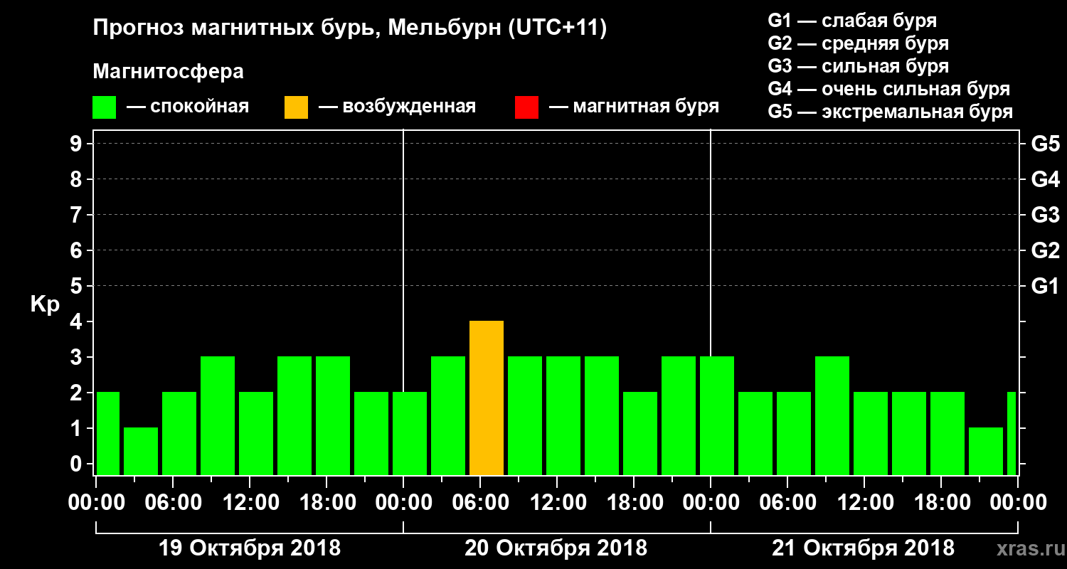 Прогноз магнитных бурь в Мельбурне на 19 октября 2018 года