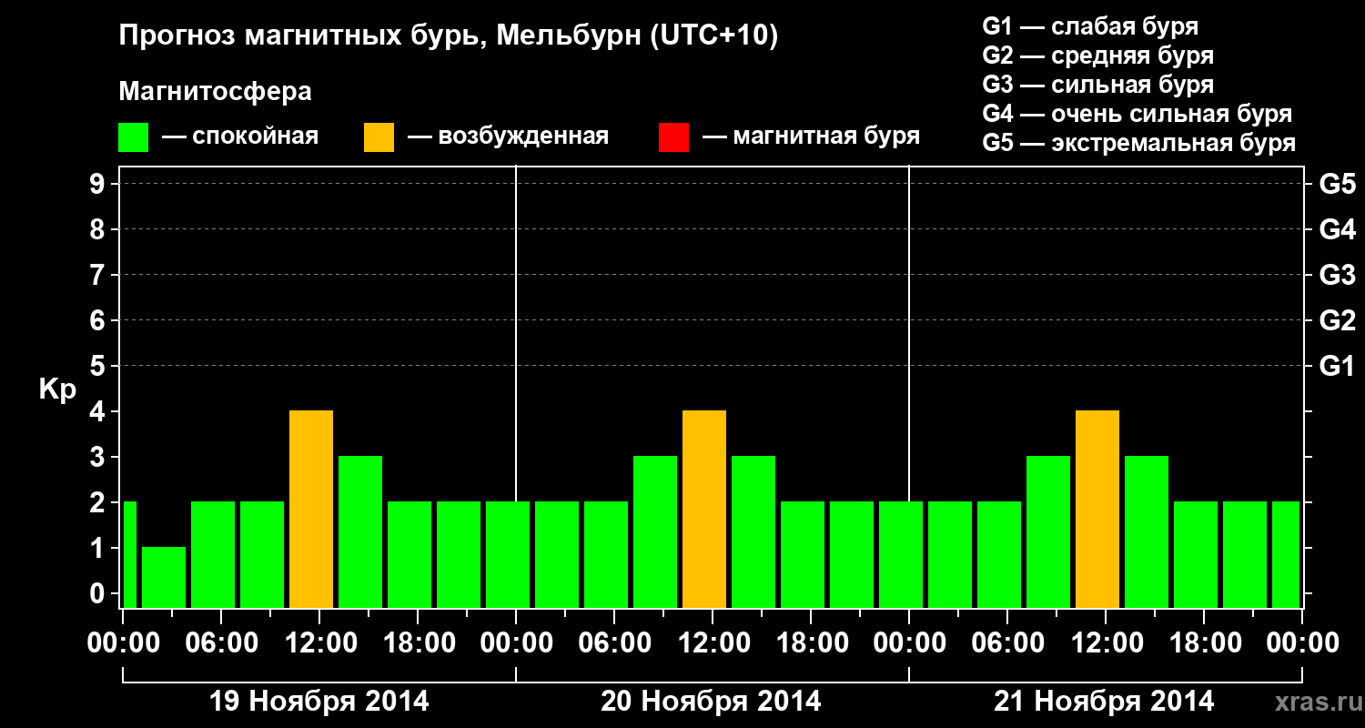 Прогноз магнитных бурь в Мельбурне — 19 ноября 2014 года