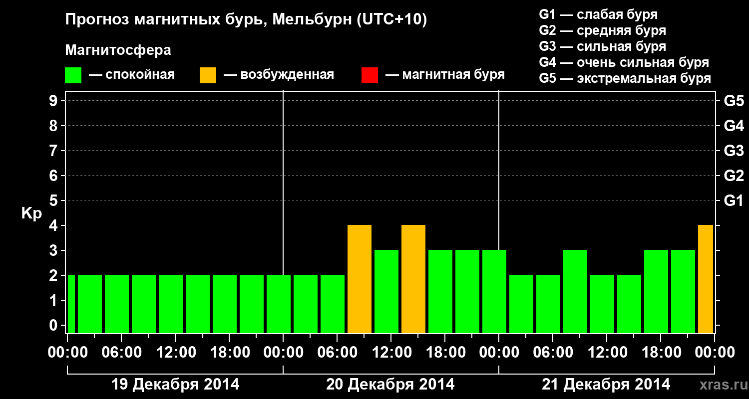 Прогноз магнитных бурь в Мельбурне — 19 декабря 2014 года