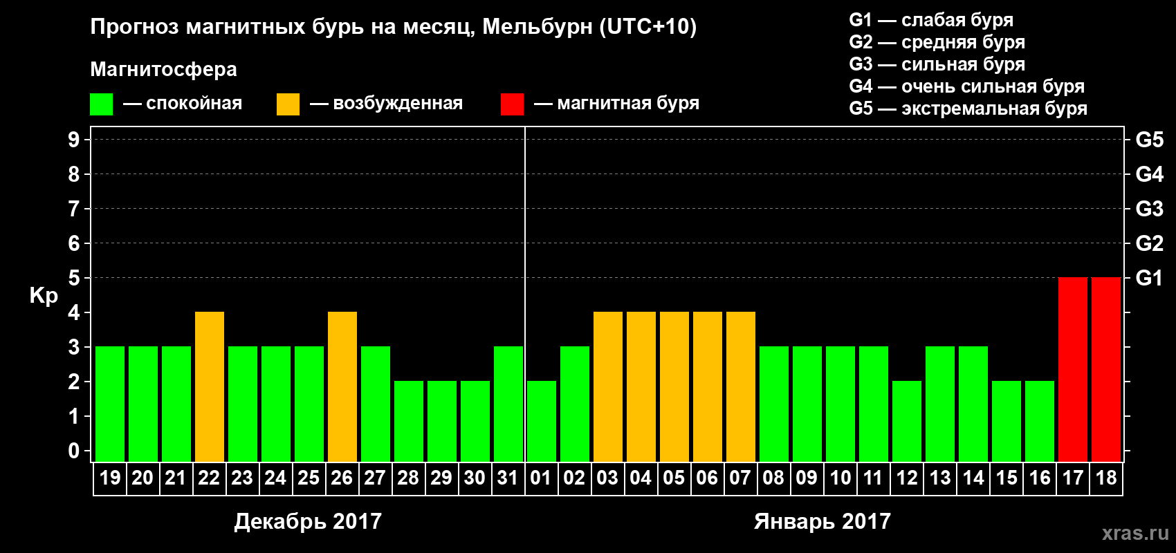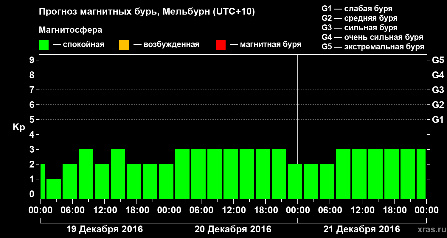 Прогноз магнитных бурь в Мельбурне — 19 декабря 2016 года