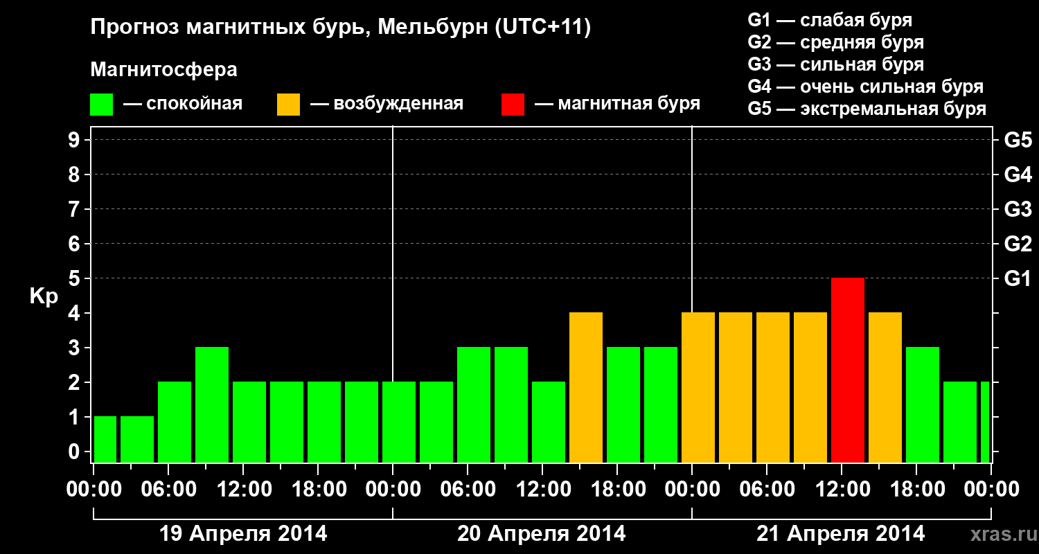 Прогноз магнитных бурь в Мельбурне — 19 апреля 2014 года
