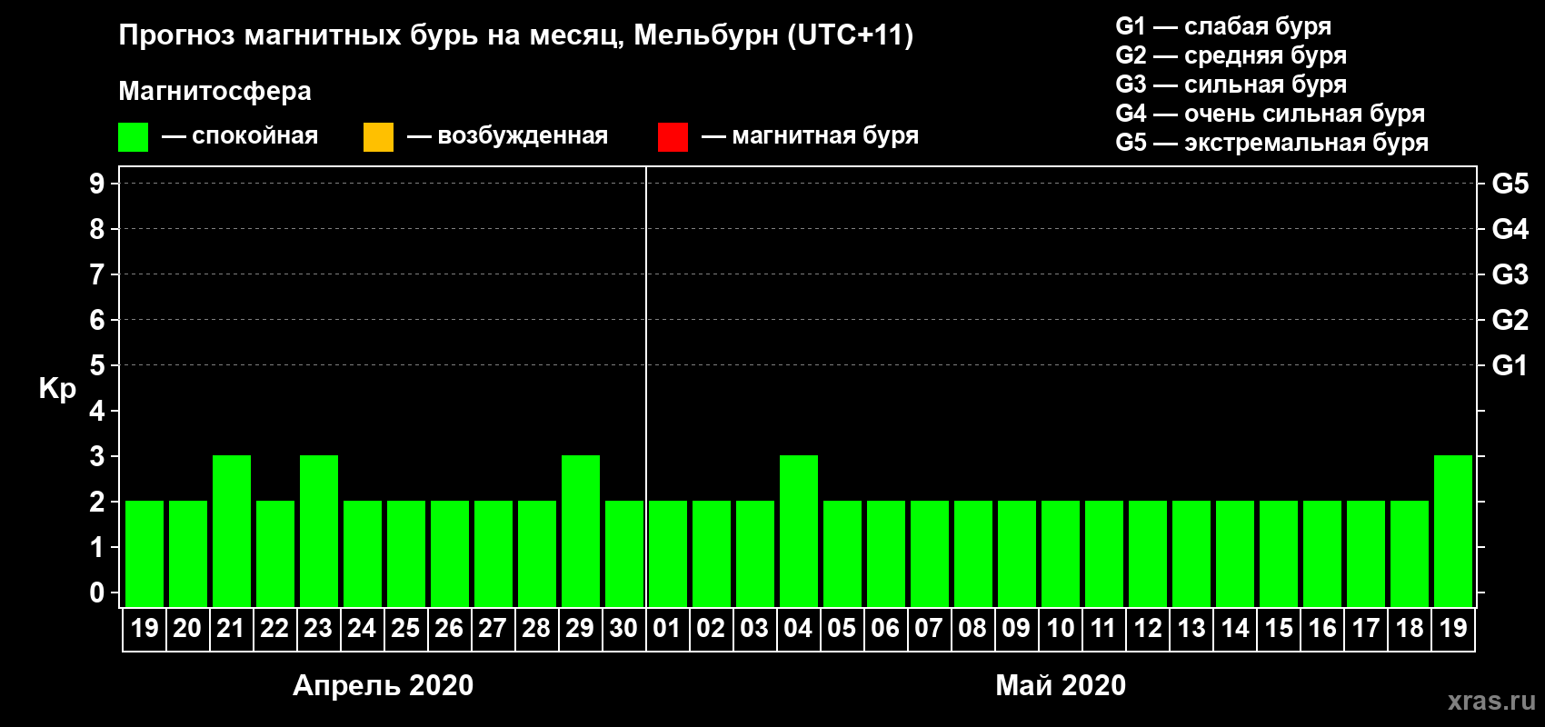 Прогноз магнитных бурь в Мельбурне — 19 апреля 2020 года