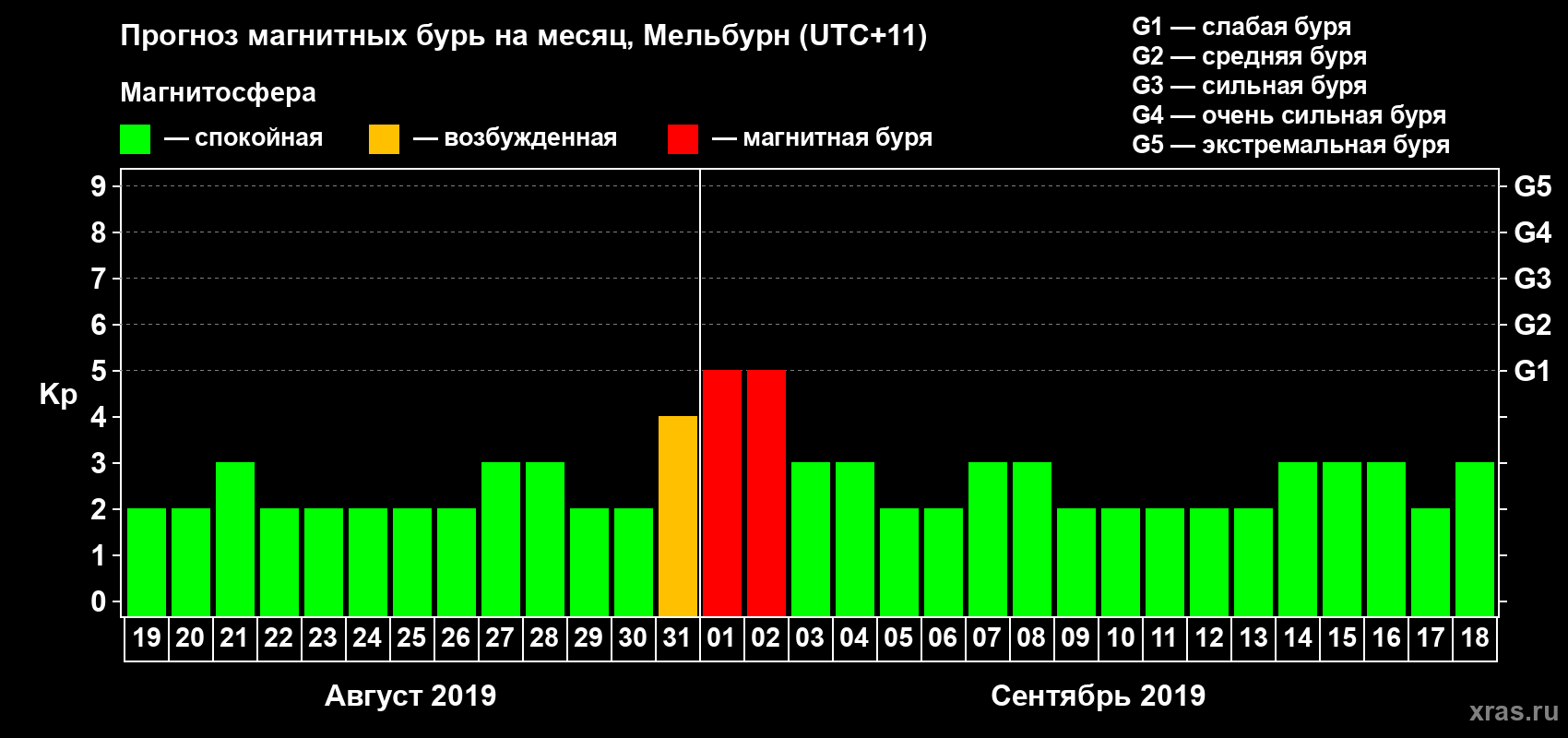 Прогноз магнитных бурь в Мельбурне — 19 августа 2019 года