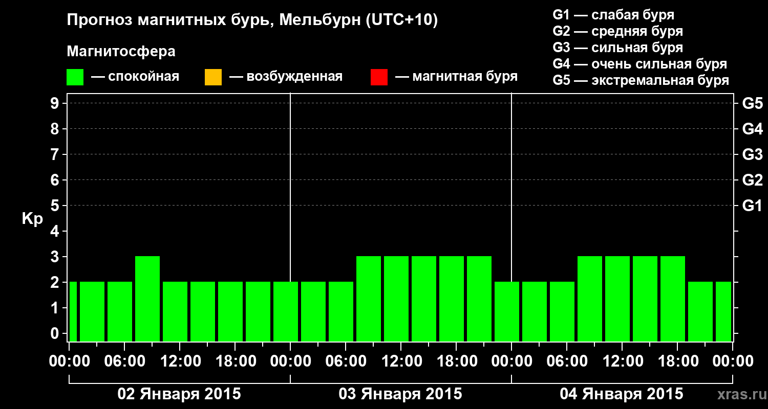 Прогноз магнитных бурь в Мельбурне — 2 января 2015 года
