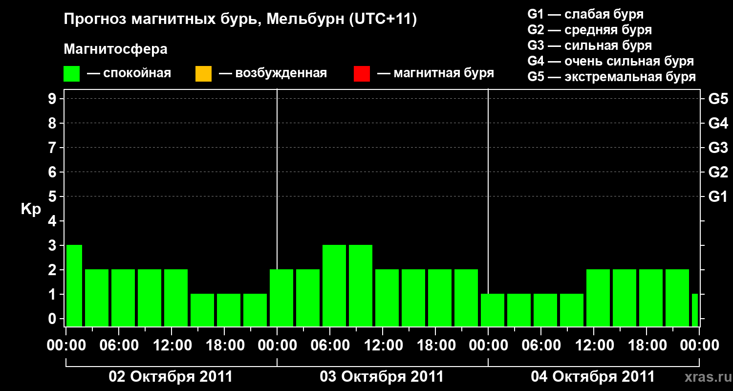 Прогноз магнитных бурь в Мельбурне — 2 октября 2011 года