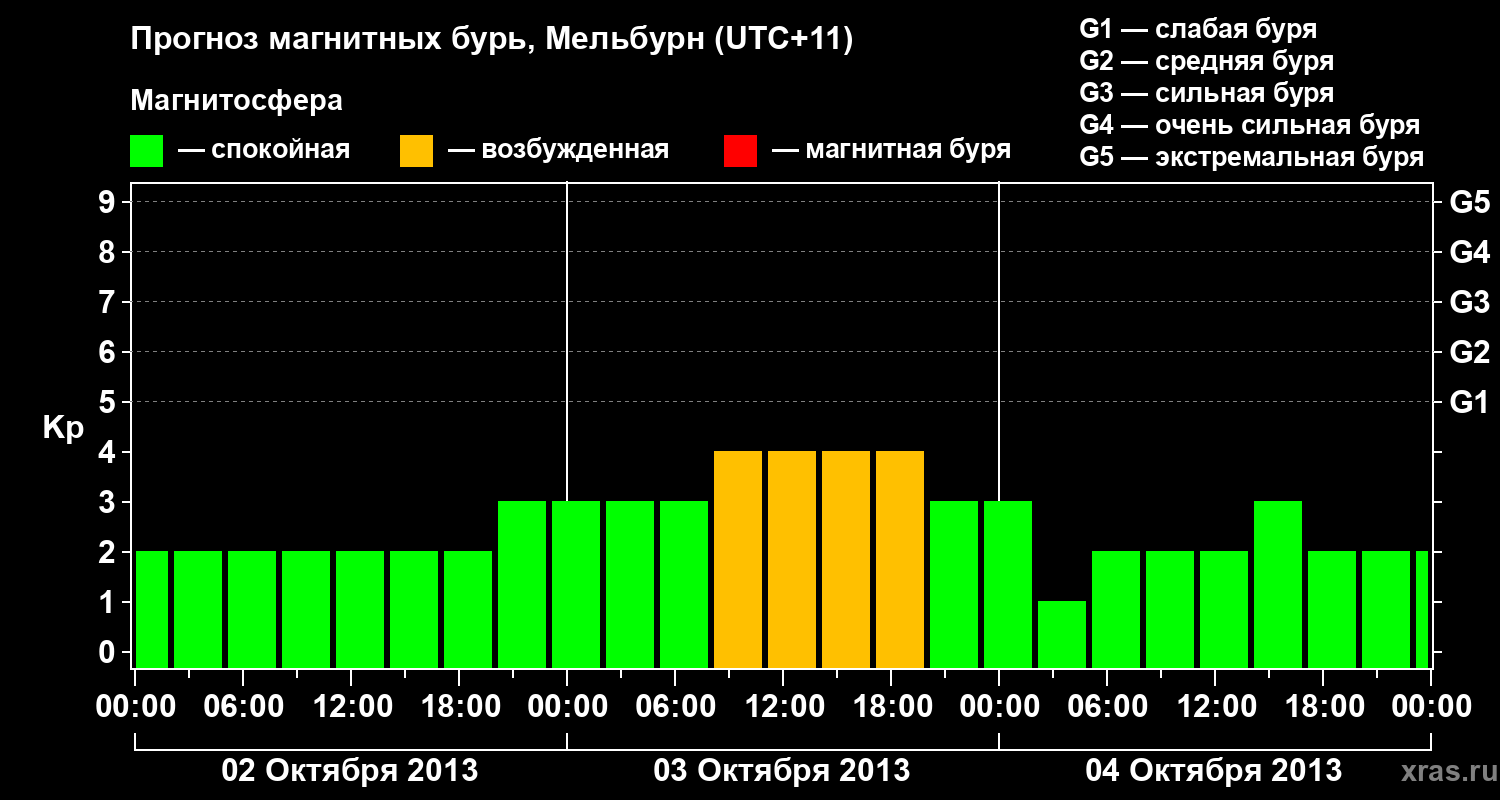Прогноз магнитных бурь в Мельбурне — 2 октября 2013 года