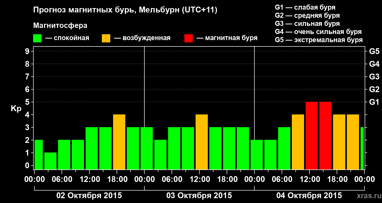 Прогноз магнитных бурь в Мельбурне — 2 октября 2015 года