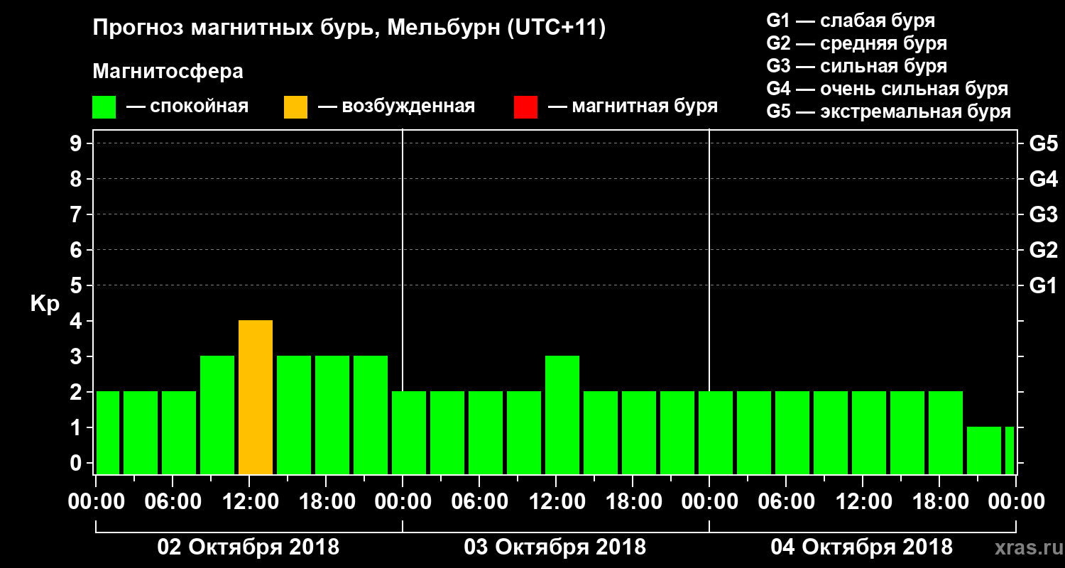 Прогноз магнитных бурь в Мельбурне — 2 октября 2018 года