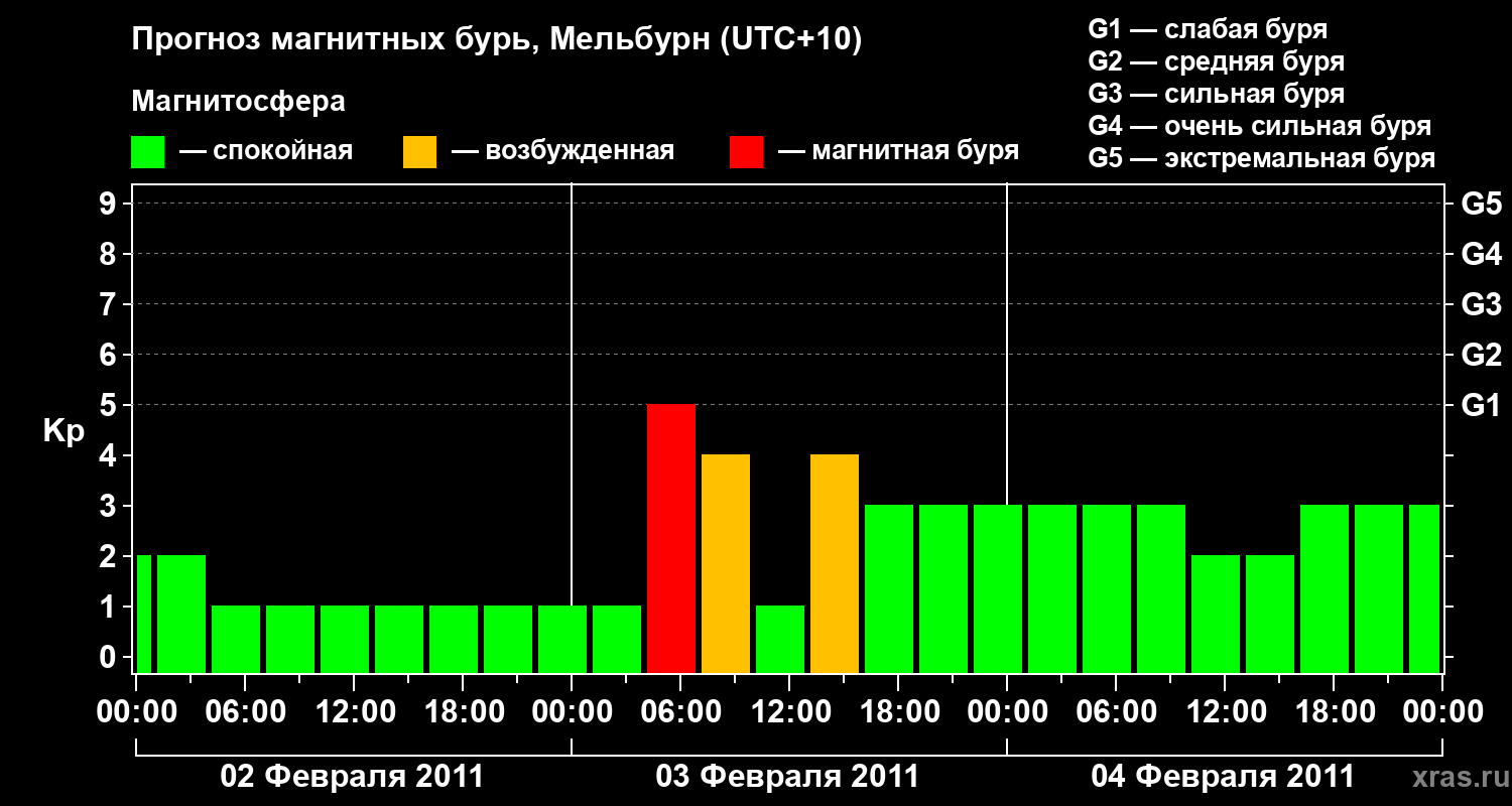 Прогноз магнитных бурь в Мельбурне — 2 февраля 2011 года