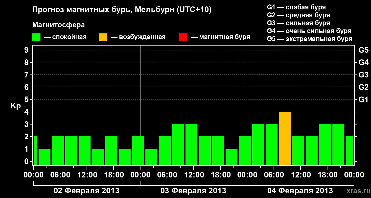 Прогноз магнитных бурь в Мельбурне — 2 февраля 2013 года