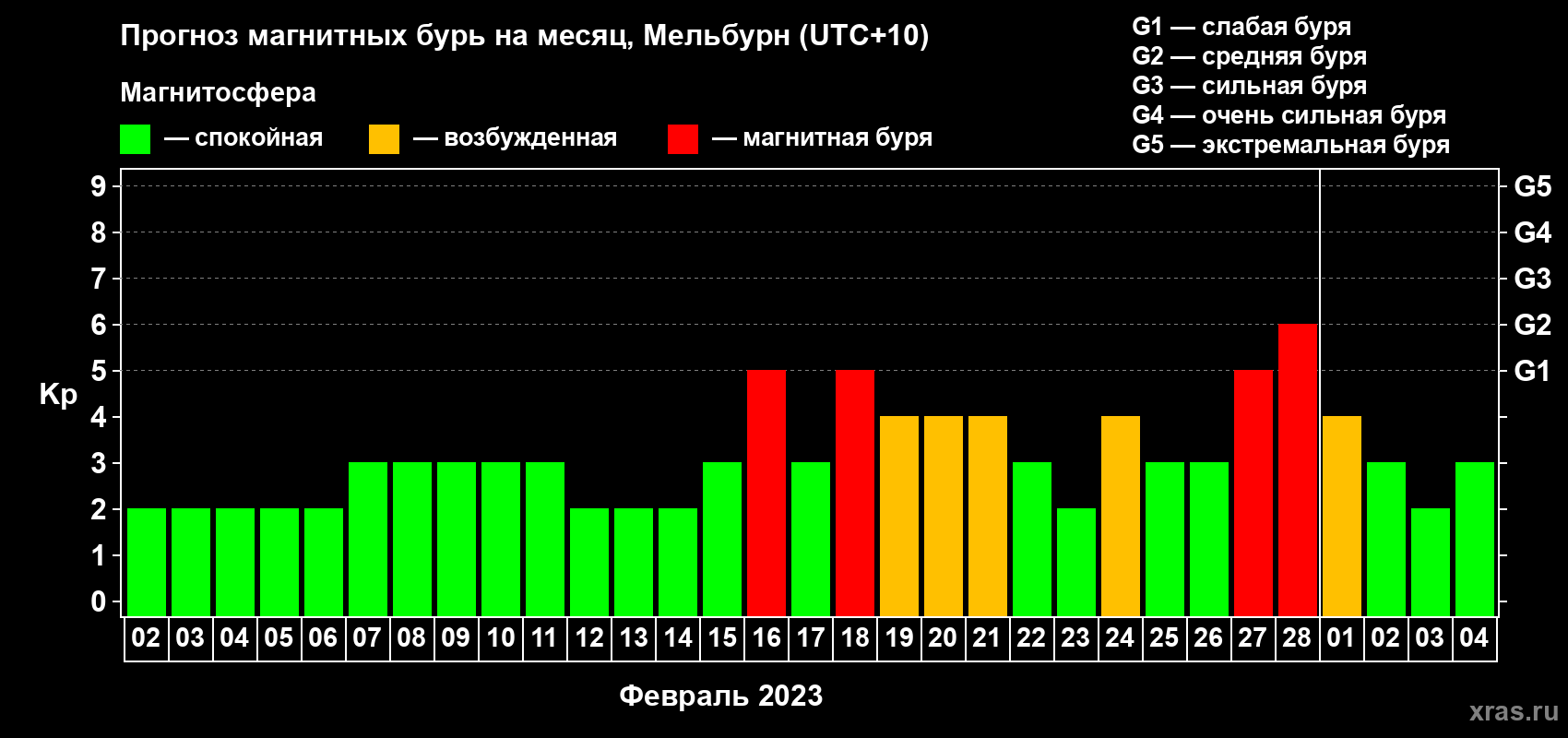 Прогноз магнитных бурь в Мельбурне — 2 февраля 2023 года