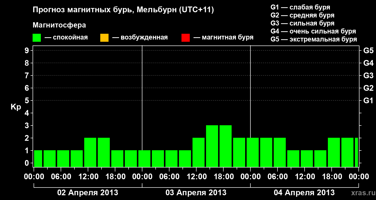 Прогноз магнитных бурь в Мельбурне — 2 апреля 2013 года