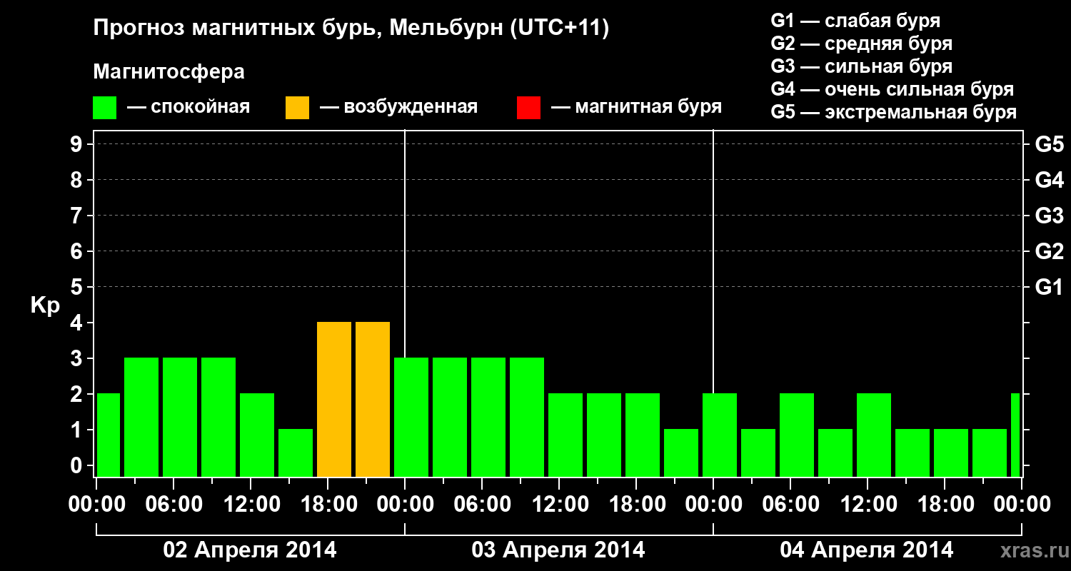 Прогноз магнитных бурь в Мельбурне — 2 апреля 2014 года