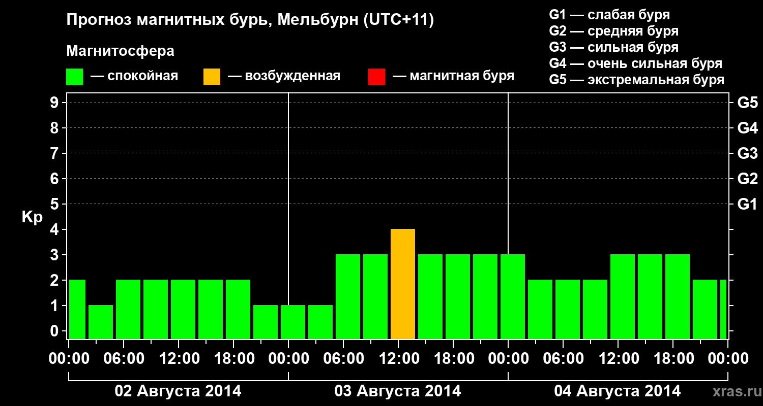Прогноз магнитных бурь в Мельбурне на 2 августа 2014 года