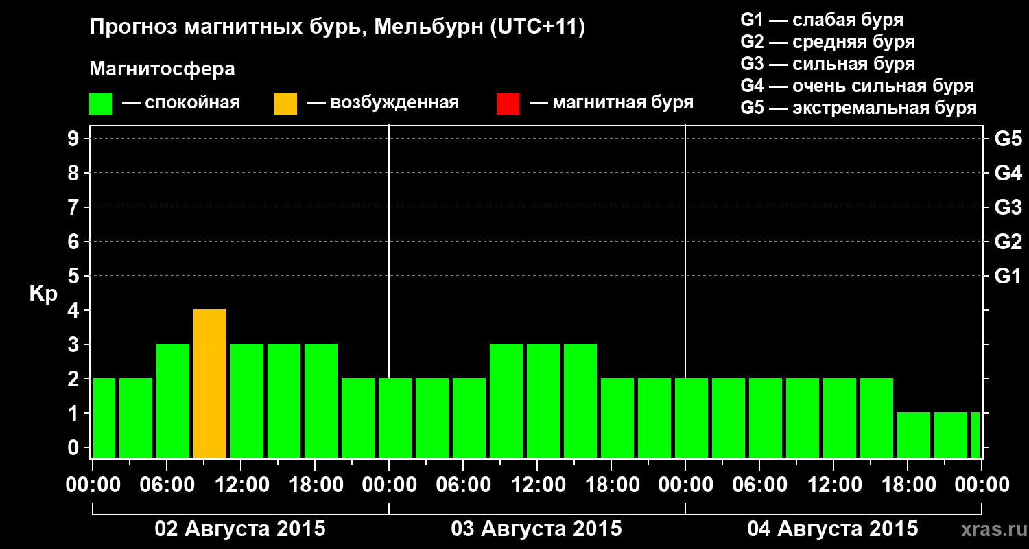 Прогноз магнитных бурь в Мельбурне — 2 августа 2015 года