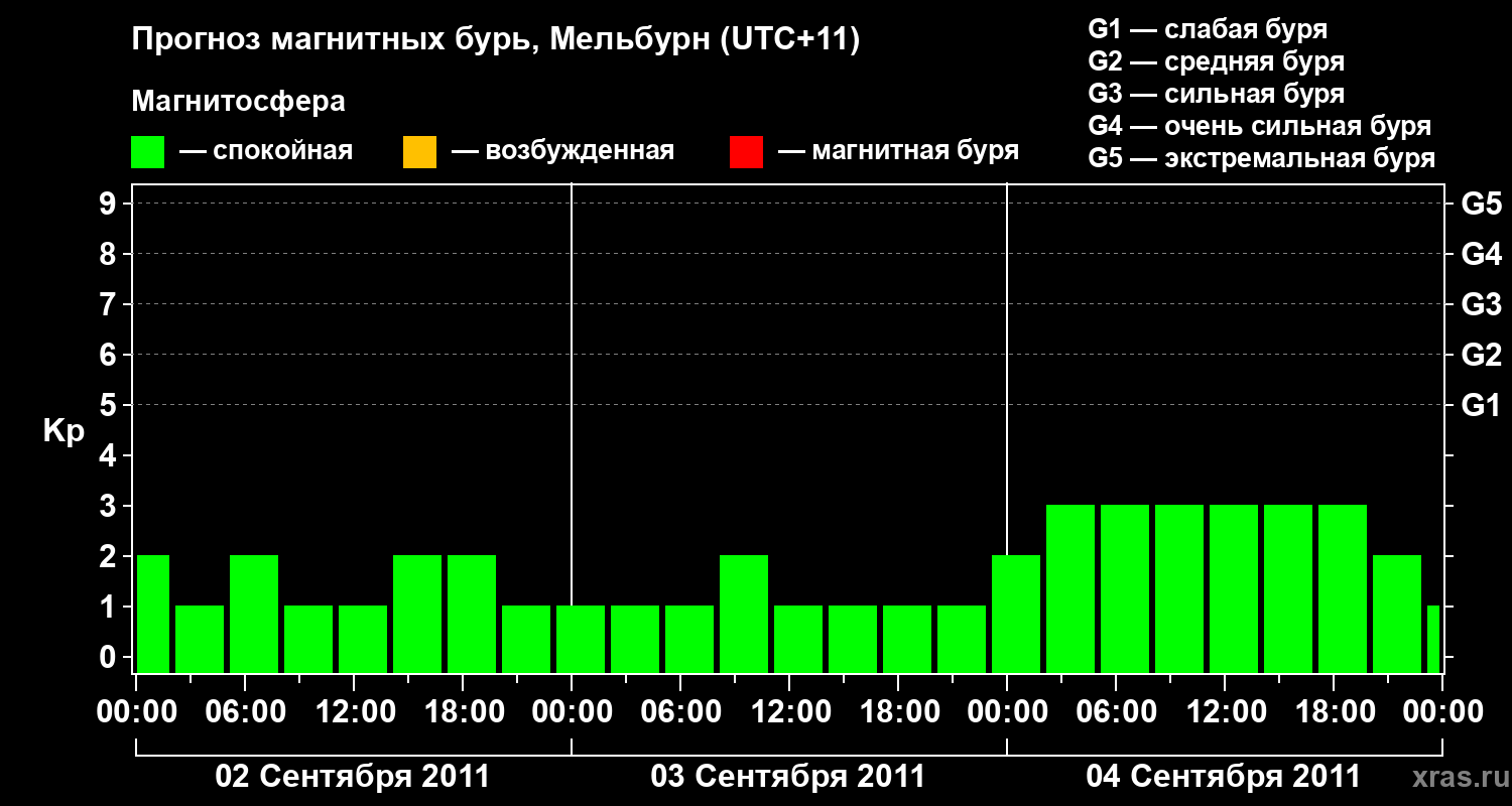 Прогноз магнитных бурь в Мельбурне — 2 сентября 2011 года