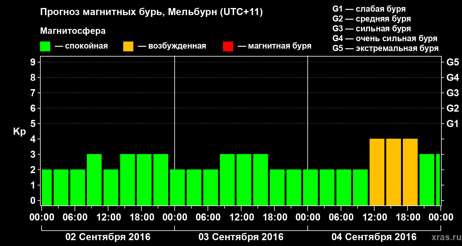 Прогноз магнитных бурь в Мельбурне — 2 сентября 2016 года