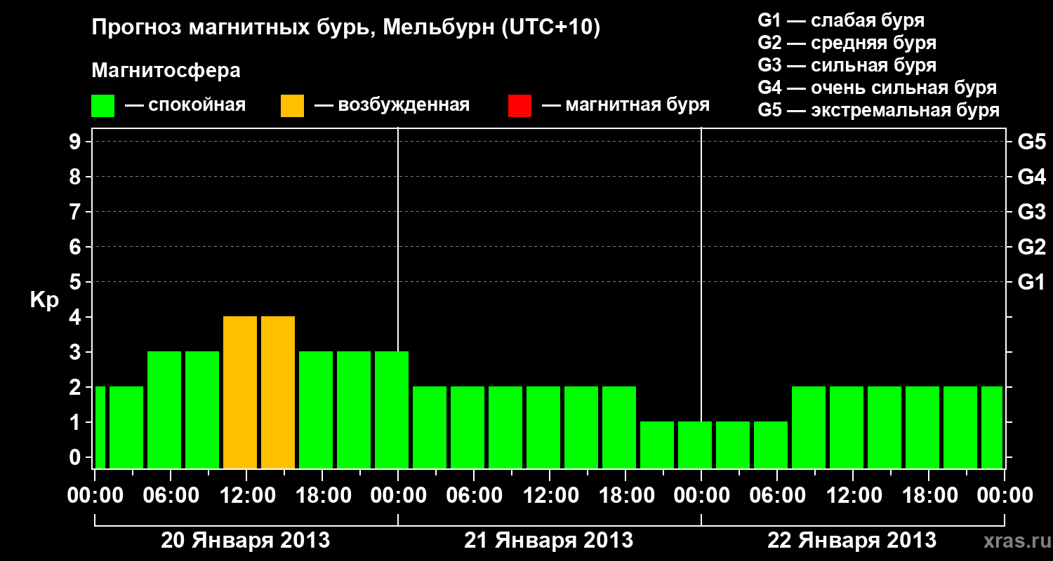 Прогноз магнитных бурь в Мельбурне — 20 января 2013 года