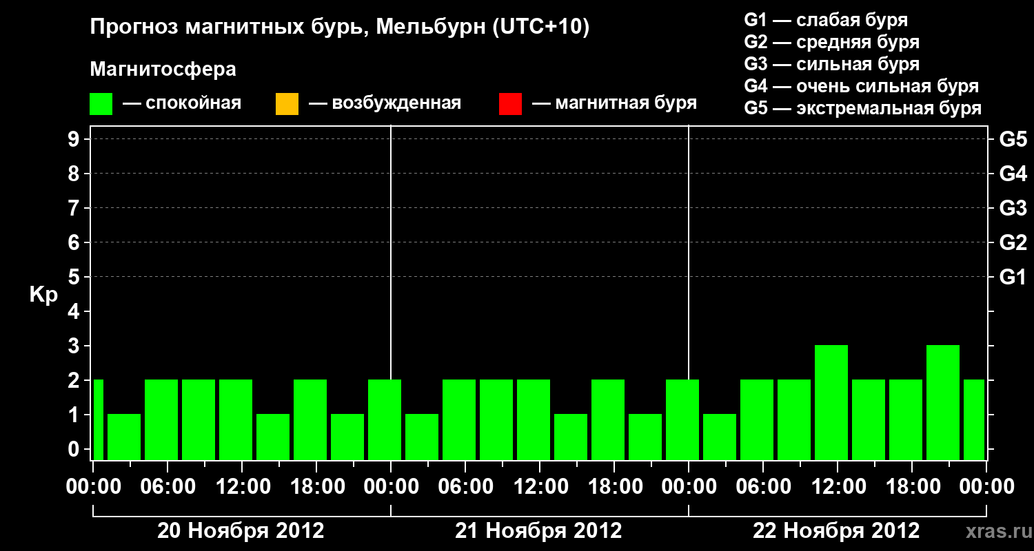 Прогноз магнитных бурь в Мельбурне — 20 ноября 2012 года