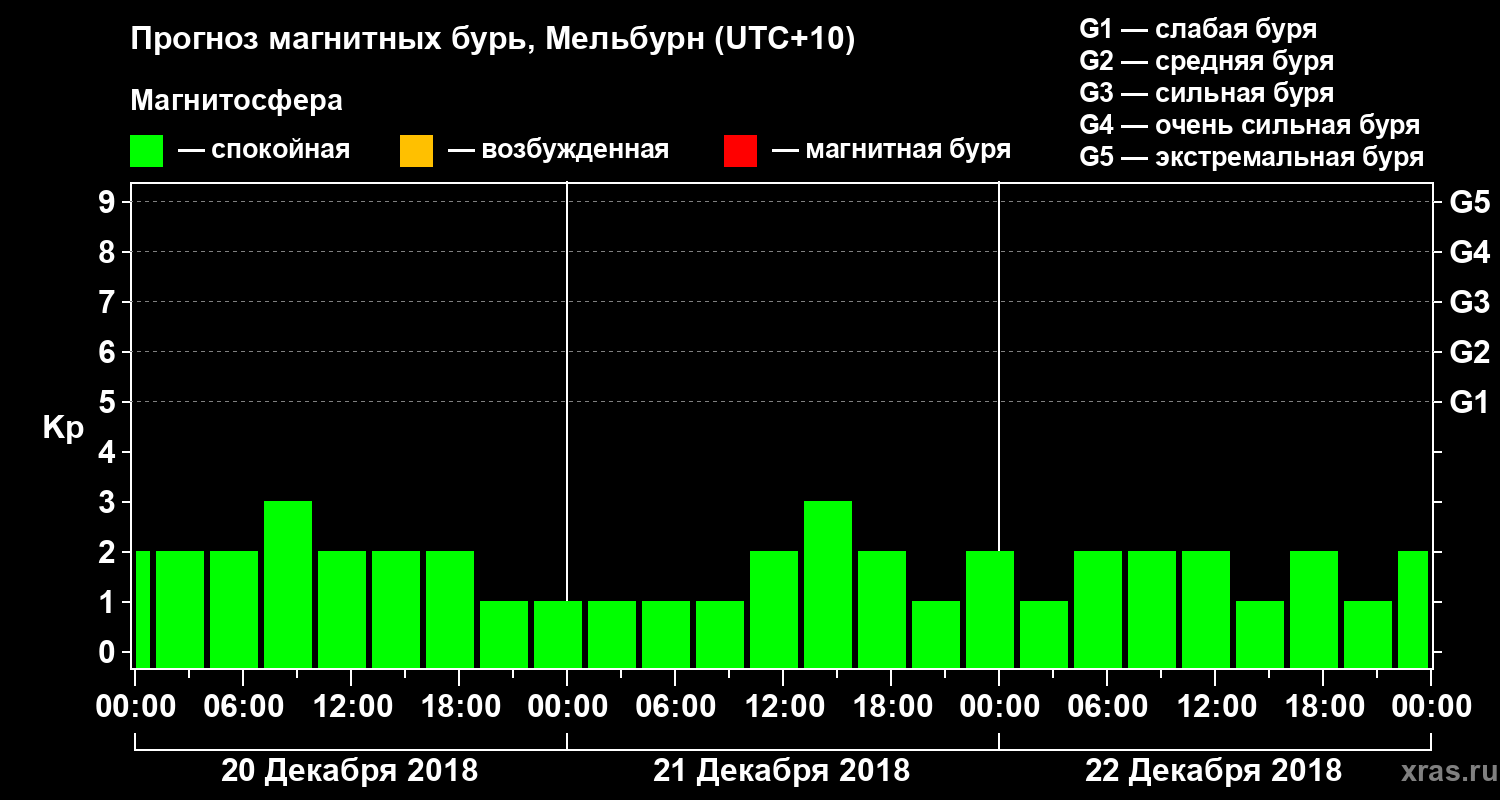 Прогноз магнитных бурь в Мельбурне — 20 декабря 2018 года