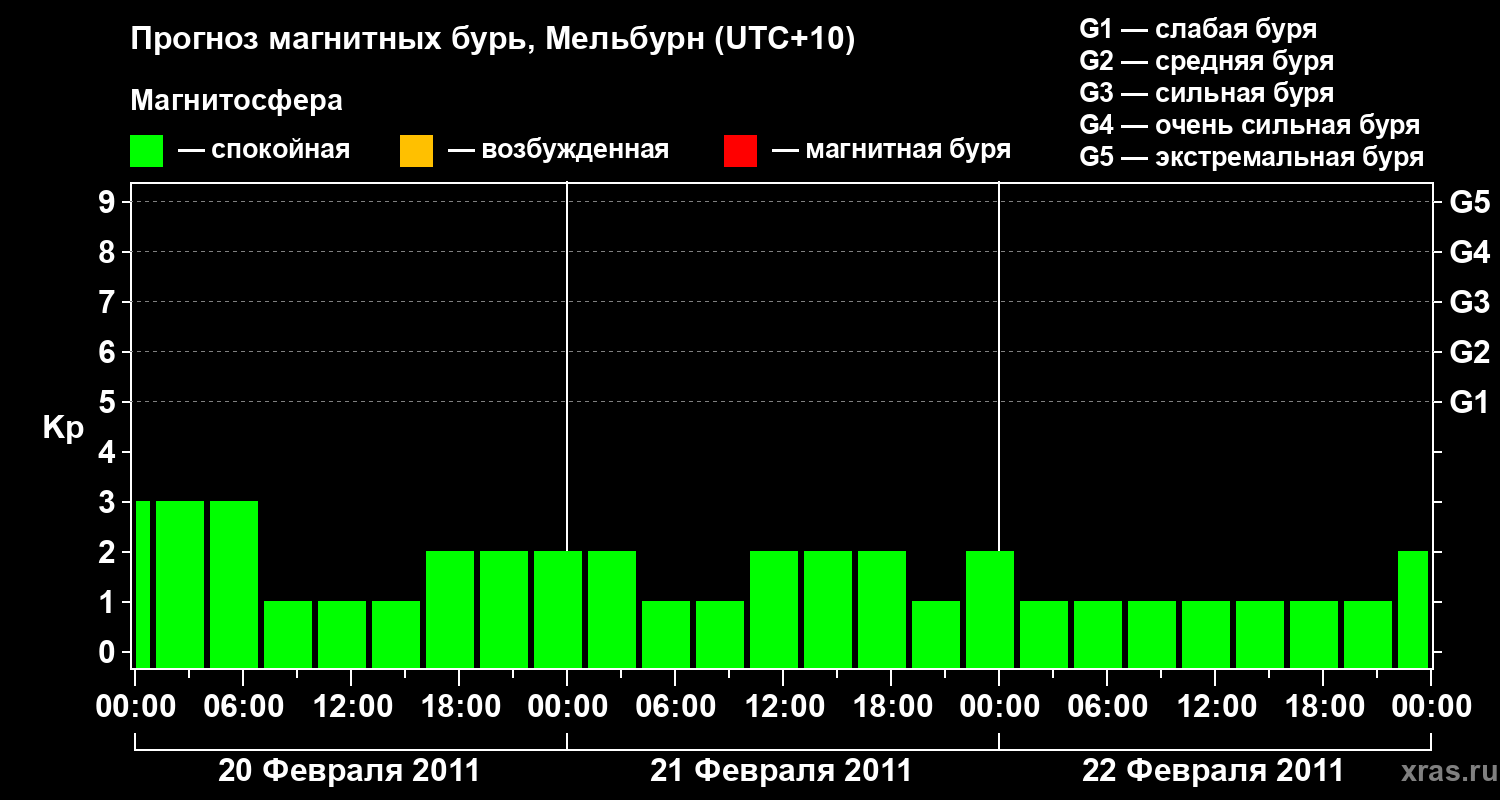 Прогноз магнитных бурь в Мельбурне — 20 февраля 2011 года
