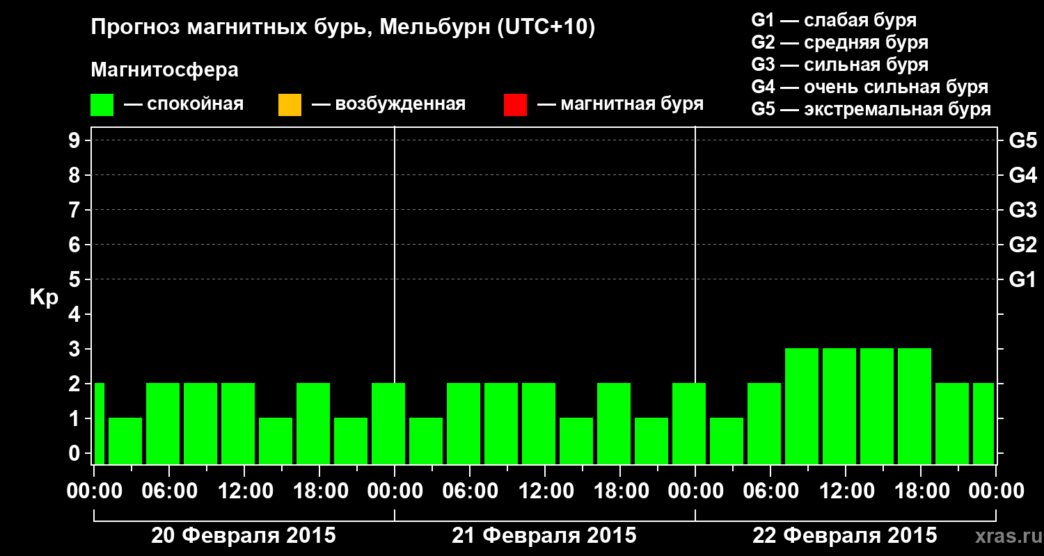 Прогноз магнитных бурь в Мельбурне — 20 февраля 2015 года